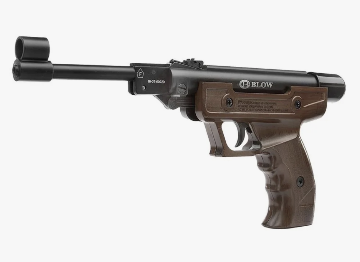 Пневматический пистолет модели Н-01 производства турецкой компании Blow предназначен для обучения, поддержания стрелковой формы, развлекательной стрельбы и формирования базовых навыков обращения с оружием. По своей конструкции пистолет относится к классу пружинно-поршневой пневматики. Ствол «переломного» типа опускается вниз, сжимая пружину и осуществляя постанов УСМ на боевой взвод. В казенную часть ствола помещается свинцовая пуля диаметром 4,5 мм, после чего ствол фиксируется в рабочем положении. При нажатии на спуск удар поршня сжимает воздух, находящийся в каморе, смонтированной позади казенного среза. Под его давлением пуля вылетает из ствола. Пистолет комплектуется нарезным стволом, изготовленным из оружейной стали. Прицельные приспособления – мушка, заключенная в кольцеобразный намушник, регулируемый по вертикали целик. Ствольная коробка также изготовлена из стали. Модель BLOW H-01 является однозарядной, рабочая дистанция прицельной стрельбы составляет порядка 10 м. Рамка вып