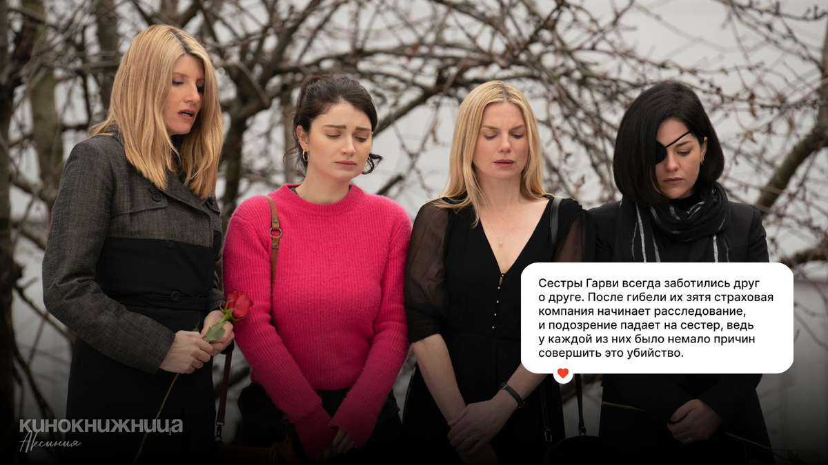 Хочу отметить, что этот сериал точный ремейк бельгийского сериала «Клан», вышедшего в 2012 году. Несмотря на это, снят он довольно хорошо и смотрится на одном дыхании. Тут все, как я люблю: смесь чёрной комедии, драмы и триллера, где убийственная дружба становится единственным спасением от мерзкого тирана. Пять сестер Гарви – это не просто сестры, а настоящий клан, сплоченный волей судьбы и объединенный нерушимой связью. Они остались сиротами в раннем возрасте, и старшая сестра Ива фактически заменила младшим мать. Эта трагедия сплотила их, и даже в свои 30 и 40+ они остаются самыми близкими подругами. С самого начала мы погружаемся в мир этих необычных сестёр, и уже на похоронах мужа Грэйс, типичной домохозяйки, становится ясно: их жизнь была не так проста, как казалось сначала. Её муж был настоящим тираном, и сестры мечтали избавить Грэйс от него. Постепенно мы узнаем историю их ненависти к нему, и понимаем, как родился замысел избавиться от зятя. Он не просто невыносимый человек, ка
