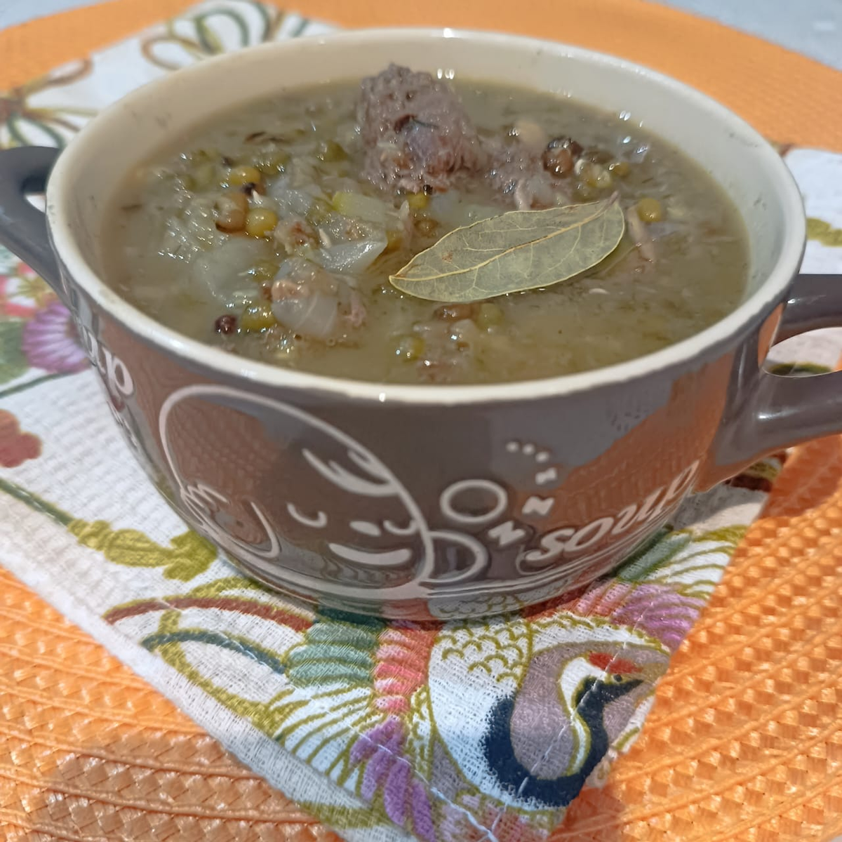 Воскресный летний привет! Почему дачный? Потому что набор продуктов немудрёный - тушёнка и маш(бобы) могут храниться долго и без проблем в шкафчике на даче ) с луком тоже обычно не бывает проблем ) добавить можно то, с чем сочетаются у вас бобовые, у меня нейтральный кабачок, опять же он демократичен -хоть из заморозки, хоть выращенный на даче, хоть ранний - они быстрее других овощей появляются в продаже и по демократичной цене ) Почему маш? Потому что я его незаслуженно забыла и нашла в шкафчике и потому что его можно сварить довольно быстро, не замачивая. И получить вкусный сытный супчик. Результат меня порадовал. * Маш можно заменить чечевицей и получить экспресс-вариант этого супа ) Ну , а с тушёнкой всё и так понятно - экспресс-белок, который всегда под рукой. Важно выбрать лучшую, без лишних соли, жира и непонятных кусков непонятно чего ) и не злоупотреблять! Маш хорошо промыть и довести до кипения, первую воду слить, дабы уменьшить неприятное влияние олигосахаридов на ЖКТ.