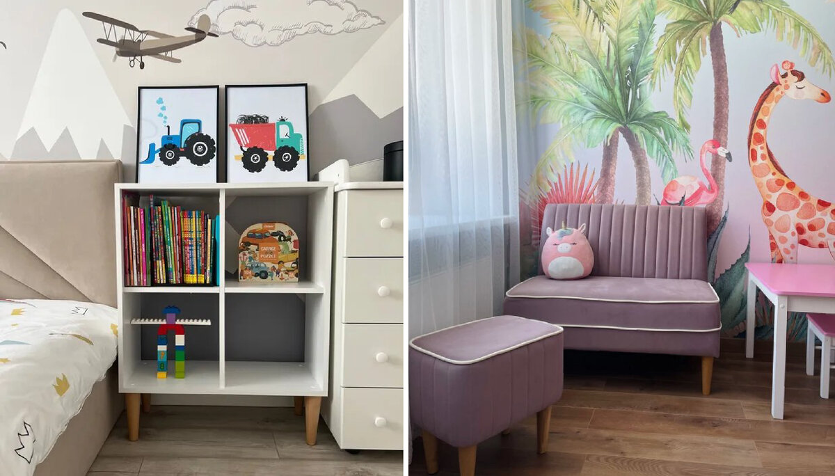 Детская комната – нестандартное помещение, в ней сочетаются и спальня, и игровая зона, и место для занятий. Поэтому важно тщательно распланировать, какую мебель здесь использовать и как ее расставить. Что необходимо учесть при меблировке детской? Рассмотрим каждую зону детской комнаты на примере покупателей мебели MONOFIX. Игровая зона Создайте уютный уголок для игр и для гостей ребенка. С компактной и легкой мебелью MONOFIX это будет несложно. Диванчики MONOFIX в интерьере детской Ширина представленных ниже диванчиков всего 100-110 см, они точно поместятся даже в самом небольшом уголке. Кресла MONOFIX в интерьере детской Кресло дополнит игровую зону или станет полноценным местом для сидения ребенка. Пуфы и банкетки MONOFIX в интерьере детской Легкие пуфики очень любят все дети, это и дополнительное посадочное место для друга, и завершающий элемент туалетного столика для девочки. Спальная зона Компактные велюровые кровати – отличное решение для подросшего ребенка. Кровати MONOFIX в инт