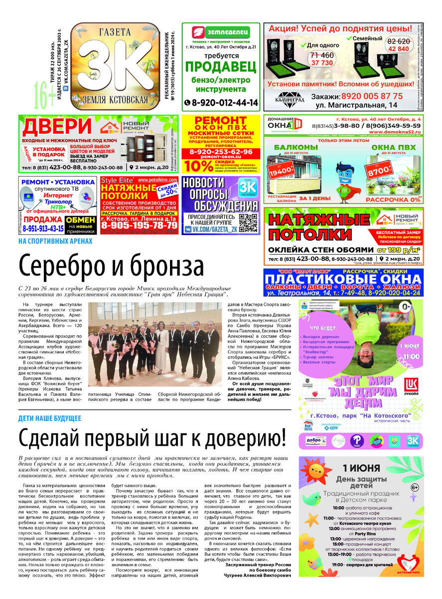 Газета "ЗЕМЛЯ КСТОВСКАЯ"№ 19 (1015) от 01.06.2024г