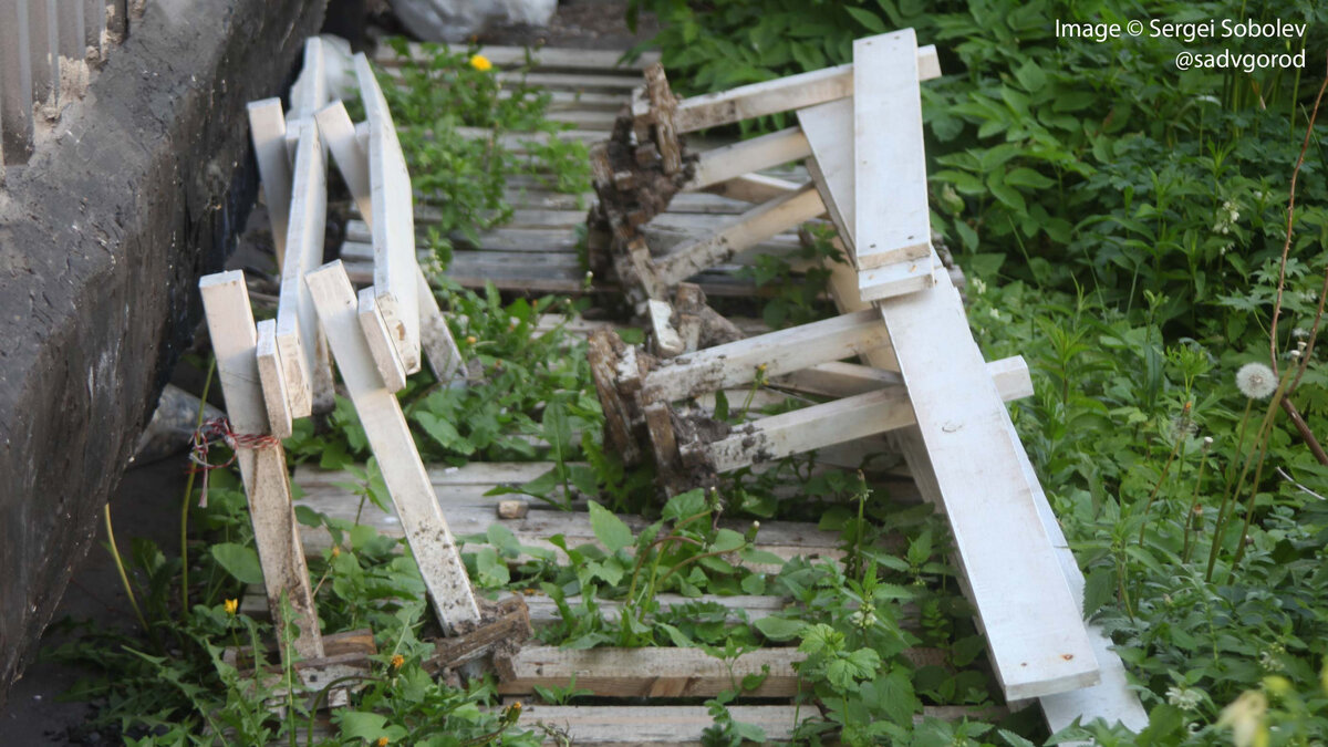 Вообще, последние дни я пребываю в довольно смешанных чувствах. Мой велопоход по Кисловодском окрестностям закончился печально — похоронами родного брата в Волжском. Из-за этого большую часть месяца я провёл с мамой. Вернулся в Москву и застал здесь разруху. Во-первых, Жилищник устранил огораживание цветника и принялся даже за мой декоративный деревянный заборчик.