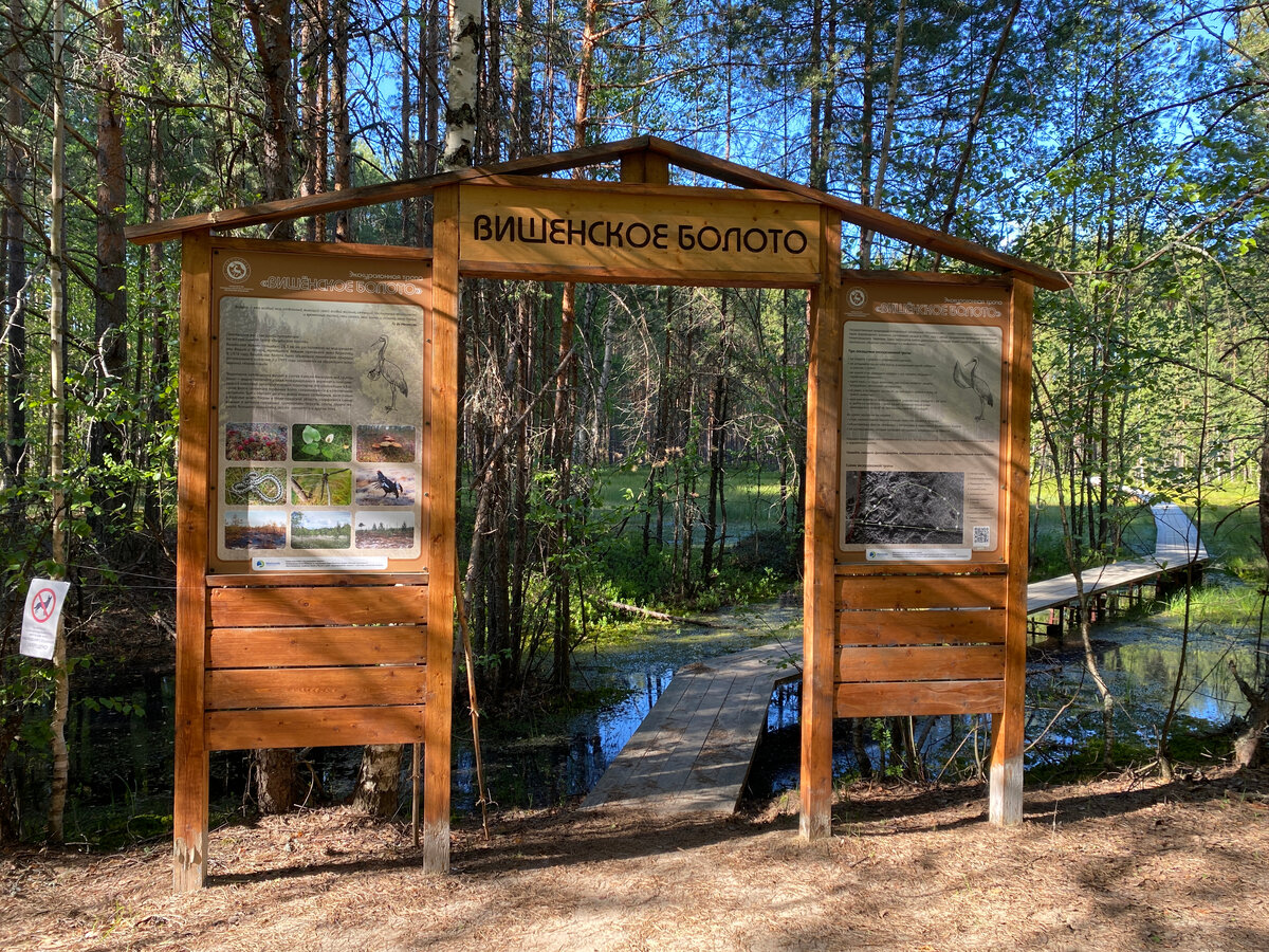 Так вот, если бы случайно я не наткнулась в Интернете на статью, где болото было названо ВишЁнским, мне бы в голову не пришло через ё читать. Я тут же встрепенулась и полезла искать в других статьях, подумав, что решающий ответ я получу на сайте заповедника (где же ещё?). А вот и нет. Там написано через Е. После этого я было решила, что на другом сайте просто ошибка. Но не могла успокоиться (ну откуда-то они это взяли? Не написать ё там, где она есть, — нормально, а вот написать там, где её нет, крайне неправдоподобно), пересмотрела свои фото и наконец на стенде рядом с началом тропы увидела заветное написание (какая я молодец, что фоткаю всё 😁):