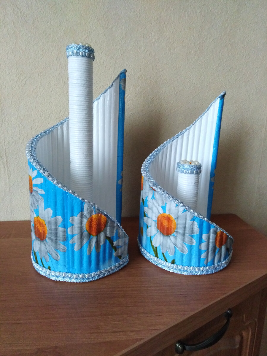 Низ основания - не скользящий коврик. В комплект к держателю для бумажного полотенца «ромашки для Наташки» сделала ещё держатель для салфеток. Боковинки и основание - гофрокартон.