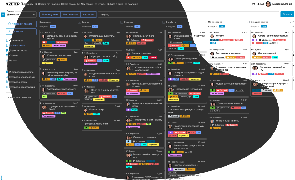 Наша система ведения задач ориентирована на комфорт пользователей. Поэтому мы не просто предоставили выбор между светлой и темной темой, но еще и сделали эту функцию максимально доступной. Переключаться между режимами можно в любом разделе системы. Для этого не требуется много времени или долгие "блуждания" по настройкам.