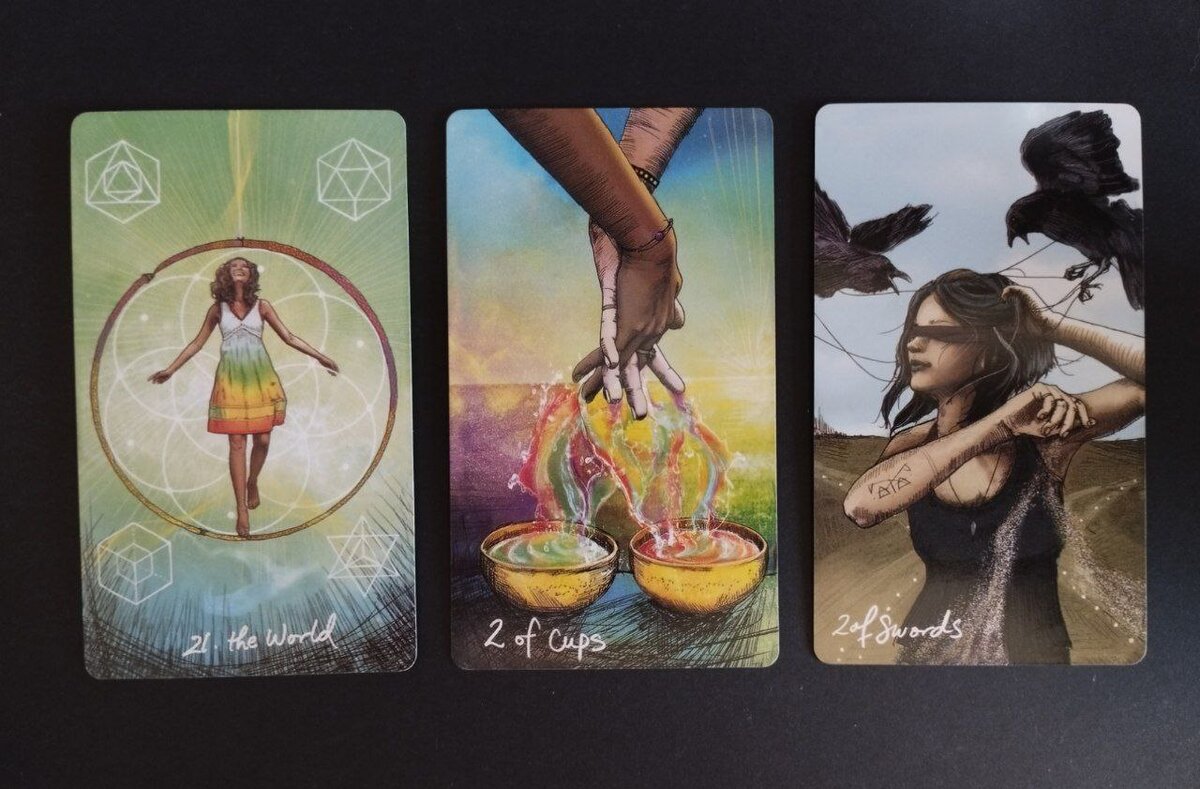 Рассмотрим, какие энергии будут воздействовать на нас в июне. Это Мир - что-то близится к завершению, какой-то процесс закончится, чтобы выйти на новый уровень или дать место новому. Обратите внимание, это процесс глобальный, затрагивающий множество людей, если не всё человечество. Необязательно при этом, что вы его заметите, ведь о многом по-настоящему важном не сообщают в новостях. Двойка чаш говорит о том, что на межличностном уровне будет преобладать согласие и дружба. Будут заключаться договоры и соглашения, завязываться новые знакомства. Это верно хотя бы потому, что сейчас многие собираются в отпуска, дети едут в летние лагеря - вот вам знакомства и дружба. А по Двойке эти вещи не будут слишком прочными. Двойка мечей же говорит о том, что в области идей, а также в области визуального искусства и подачи будет много запутанности и даже лжи. Поэтому не особенно верьте тому, что сообщают новостные каналы, и уж точно не принимайте за чистую монету художественные произведения, созданн
