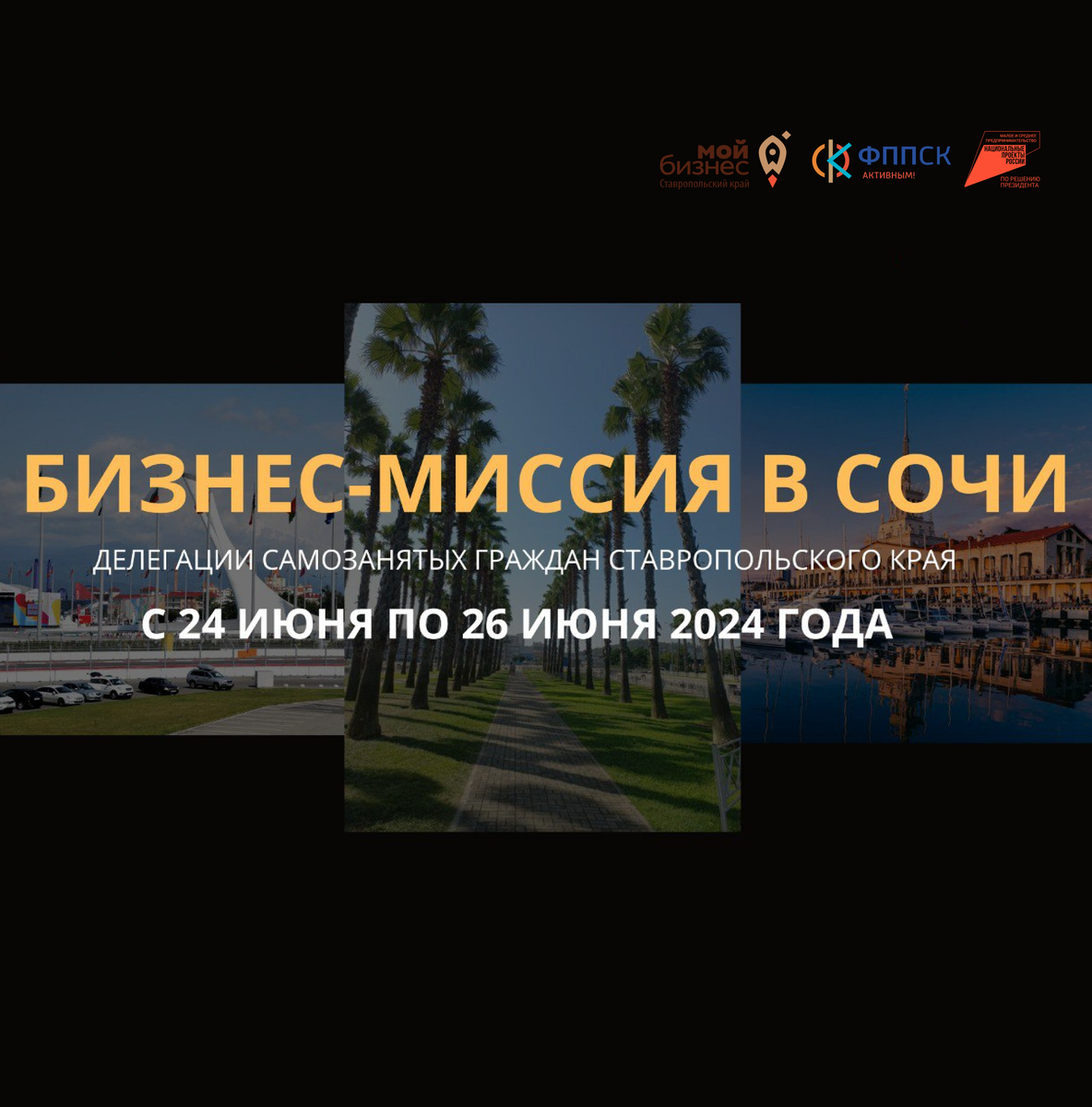 С 24 июня по 26 июня 2024 года делегация самозанятых граждан Ставропольского края посетит город Сочи в рамках межрегиональной бизнес-миссии. 🌟 Основная цель мероприятия – налаживание сотрудничества между регионами для выхода на новые рынки, поиск партнеров и клиентов, а также обмен опытом в области развития бизнеса. 🙋🏼 Участниками делегации Ставропольского края являются производители натуральной косметики, микрозелени, опилок, поставщики услуг лазерной гравировки и резьбы, специалисты по дизайну карточек товаров OZON/WILDBERRIES, услуг по изготовлению неоновых вывесок, а также наружной рекламы. Приглашаем к участию в межрегиональной бизнес-миссии организации и предпринимателей города Сочи, желающих найти партнеров, клиентов или поставщиков. ✨ Организатором бизнес-миссии выступает центр «Мой бизнес» Ставропольского края, действующий на базе некоммерческой организации «Фонд поддержки предпринимательства в Ставропольском крае», в рамках реализации национального проекта «Малое и среднее