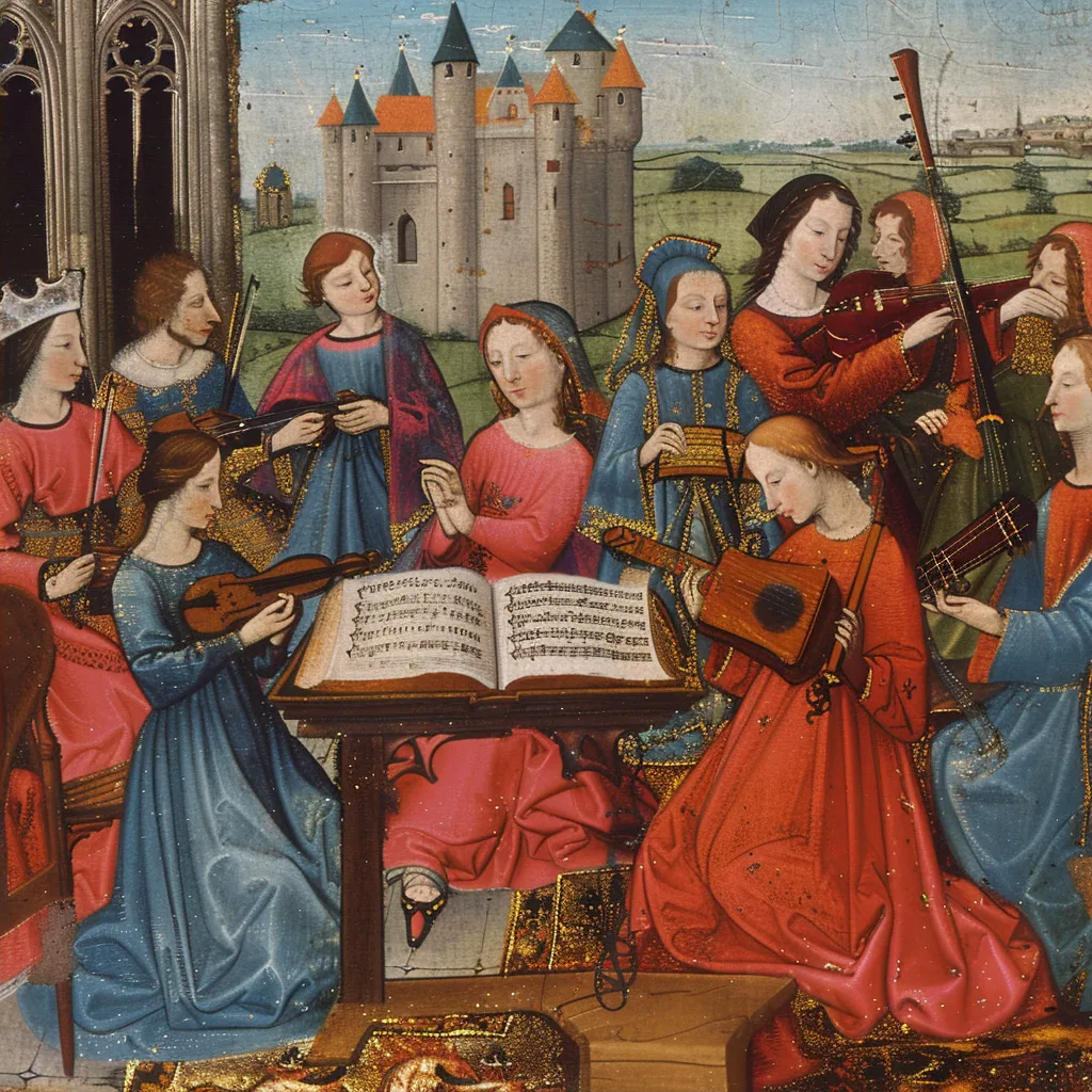 Музыка в Средневековье считалась посланницей с небес, связывалась в сознании с чем-то небесным и божественным. Тут же находило своё отражение постулат о триединстве Бога, в виде которых представляли три музыкальных части: начало, середину и конец произведения. Три вида музыкальных инструментов ассоциировались с тремя христианскими добродетелями: верой, надеждой и любовью; четыре нотные линейки — с четырьмя апостолами-евангелистами; четыре лада — с четырьмя периодами жизни Христа (вочеловечение, смерть, воскрешение, вознесение).