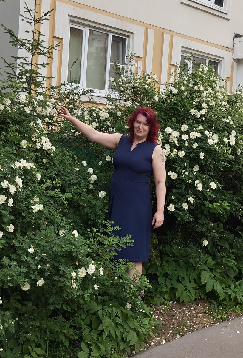 Цвет настроения синий! Темно-синий, как летняя ночь ))) Ткань вообще не под +28, которые в Москве прочно и надолго, но рукава максимально открыты. Ну и я на улице не все 24 часа. Я это платье еще в холодное время ношу, со светлой водолазкой. Алена иронизирует: - Мама, ты школу давно закончила, форму носить не обязательно!..