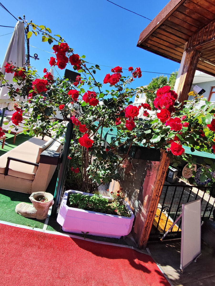 Я останавливалась в одном из бюджетных (их тут совсем немного) отелей Чешме. Отель маленький, из питания я брала только завтраки. (к завтраку с вами также присоединятся местные котики). Территория небольшая, но ухоженная, много цветов. Завтраки довольно таки скудноватые, но зато шведский стол (это редкость для Чешме). На завтрак подают: колбасу, сыр, оливки, хлеб, огурцы, помидоры, хлопья, вареные яйца, чай и кофе.