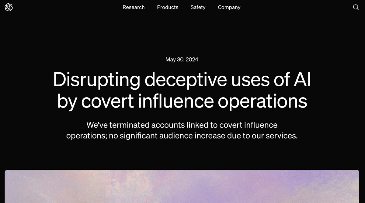 OpenAI обнаружила и пресекла информационные операции России и других стран, проводимые с целью воздействия на общественное мнение и политические процессы с помощью ее ИИ–технологий. Мы закрыли аккаунты, связанные с тайными операциями влияния; никакого значительного увеличения аудитории за счет наших услуг. OpenAI стремится обеспечивать соблюдение политик, предотвращающих злоупотребления, и повышать прозрачность контента, создаваемого ИИ. Это особенно верно в отношении обнаружения и пресечения тайных операций влияния (ОП), которые пытаются манипулировать общественным мнением или влиять на политические результаты без раскрытия истинной личности или намерений стоящих за ними субъектов. За последние три месяца мы пресекли деятельность пяти тайных IO, которые пытались использовать наши модели для поддержки мошеннической деятельности в Интернете. По состоянию на май 2024 года эти кампании, похоже, не привели к существенному увеличению вовлеченности или охвата аудитории в результате наших усл