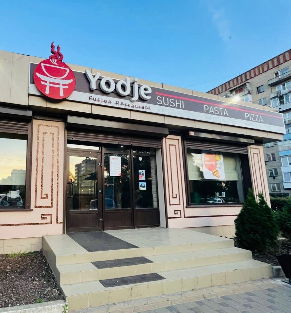 Всем привет из Нововоронежа! Честно говоря, разгуляться здесь особо негде, приличных ресторанов и баров не так много, по этому открываем карту и смотрим, что нам предлагает Яндекс. А предлагает он нам поужинать в кафе японской и европейской кухни YODJE на улице Набережная, дом 6а с видом на местную достопримечательность "Звезды славы" и водоем.