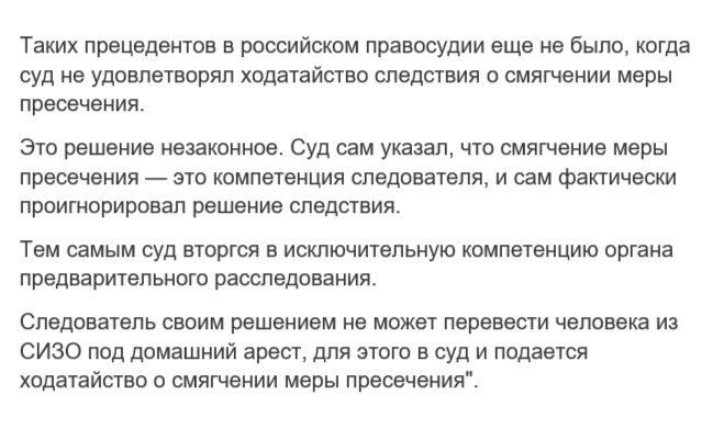 Слово нонсенс относительно решения суда оставить Ивана Попова в СИЗО доносится от каждого, кто хотя бы как-то опосредованно имеет отношение к нашей судебной системе. Но что там кто-то, вот что говорит адвокат Ивана Попова: Естественно, что защита этот приговор обжаловала. Теперь посмотрим, как суд будет «выкручиваться». Тут ведь какое дело, расшифруем для вас чуть подробнее. Когда следователь просит о смягчении меры пресечения, суд обязан его удовлетворить. На этой стадии суд лишь «печётся» о соблюдении конституционных прав обвиняемого. А на деле получилось так, что он вместо следователя Попова обвиняет. Вообще, тут прошёл слушок, что мол Попову свинью подложили публичной оглаской его дела и «давлением» на суд и следствие. Вроде как, суд сделал это вопреки «давлению общественности». Конечно, мнение такое себе, судебную систему нашу совершенно не красящее. Суд он на то и суд, что должен быть беспристрастным при любых обстоятельствах. А тут с этим как-то «не очень». Также отметим, что та