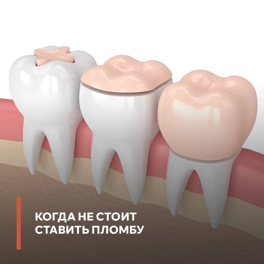 Если зуб разрушен более, чем на 50%, мы не рекомендуем устанавливать пломбу.