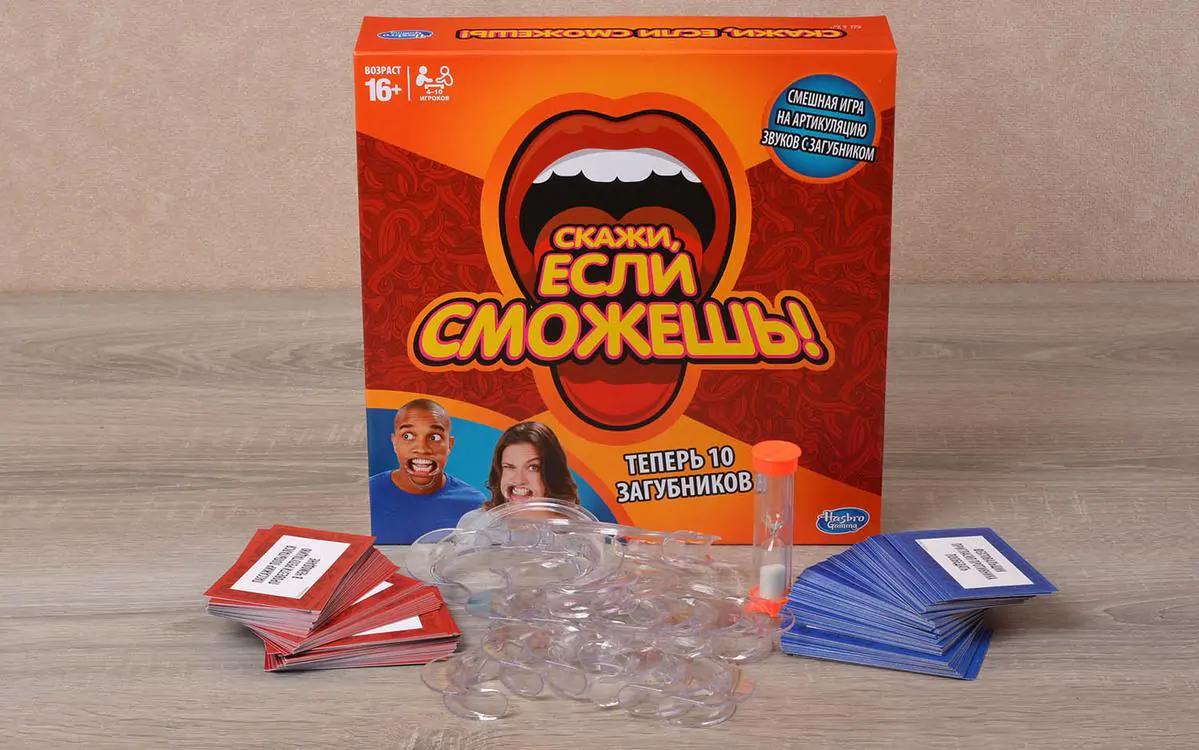 Игрок пытается произнести фразу с вставленным в рот загубником. Устройство не даёт сомкнуть губы, а значит, человек не может полноценно говорить. Остальные должны расшифровать сказанное за определённое количество времени. Не уверены, что вы сможете играть из-за смеха, но это даже минусом не назовёшь.