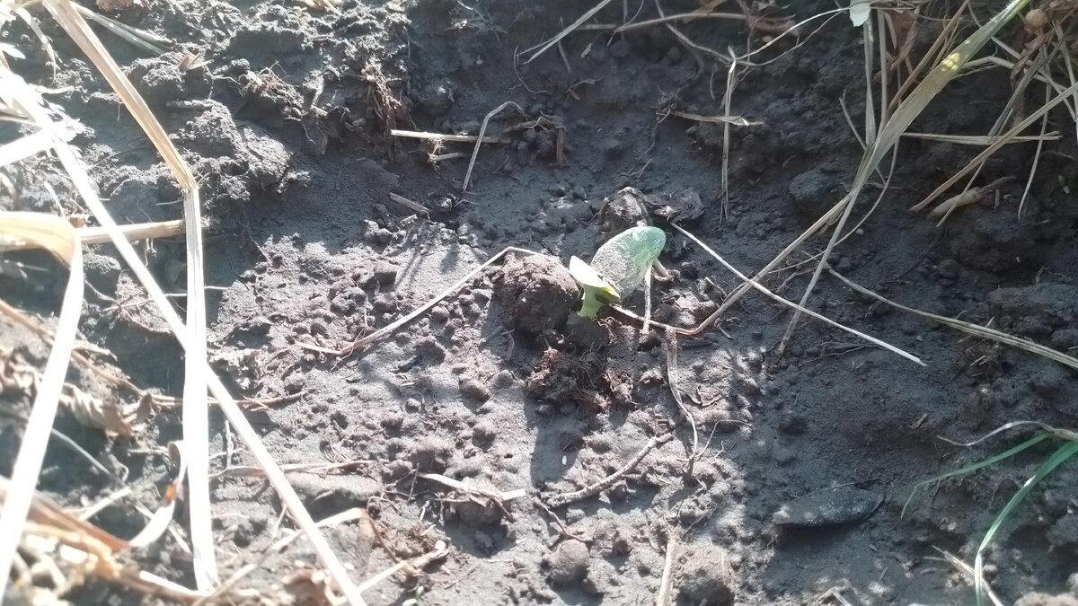 Сажаю кабачки в последней декаде мая, чтобы не попадали под возвратные заморозки, в этот раз - двадцать пятого мая, чтобы взошли в начале июня. Ну, так просто удобнее считать сроки плодоношения - с первого числа. Пишут, что кабачки всходят за шесть-девять дней, но мои этот план перевыполнили - взошли на третий день. Почему? Думаю, что совпало несколько факторов. Во-первых, повезло с погодой: последняя декада мая - как хороший июль, под тридцать градусов днём и пятнадцать ночью - это в самый раз для кабачков. Во-вторых - трава, которой набиты грядки, была только слегка подвялена, и начала "гореть", дополнительно подогревая кабачки снизу. В третьих - поливаю по несколько раз в день. Жара же. Сколько купаюсь - столько и поливаю, каждый раз лейку с собой на реку беру. Ну и кроме того - это классный сорт "заячье ушко", они сами по себе молодцы. Вон, каков богатырь! Ну ладно, ещё не богатырь - ему же всего день от роду, но скоро богатырем станет. Три богатыря😄 Грядка чуть больше полутора м