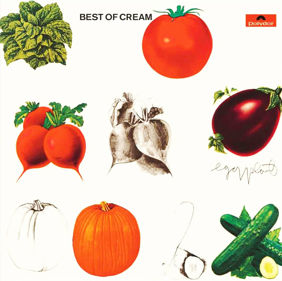 Внезапная обложка для альбома группы, которая никогда не ассоциировалась с садово-огородной тематикой. Скорее для конверта подошли бы сливки — в соответствии с названием британского трио Cream. В составе банды объединились «сливки» лондонской блюз-роковой сцены: гитарист Эрик Клэптон, басист Джек Брюс и барабанщик Джинджер Бейкер. Каждый — солидный, состоявшийся музыкант с норовом и амбициями. Вместе они высекали искры. Правда, долго сотрудничество троицы не продлилось. Выпустив несколько классических записей и покорив мир своим мастерством, участники Cream возненавидели друг друга настолько, что начали летать на гастроли в разных самолётах. Доходило и до рукоприкладства. Сборник лучших вещей Cream вышел вскоре после распада трио. Трудно понять, какими мотивами руководствовался дизайнер, оформляя коллекцию психоделических блюзов изображением сочных огурчиков-помидорчиков. Но, наверное, при помощи сливок из представленных даров огорода можно приготовить что-то вкусненькое! Читайте также