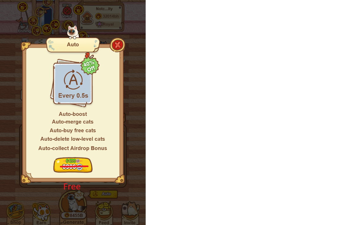 Автоматическое получение бесплатных котиков во вкладке "feed"