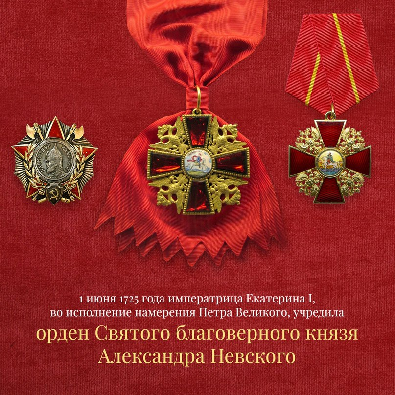 1 июня 1725 года императрица Екатерина I, во исполнение намерения Петра Великого, учредила орден Святого благоверного князя Александра Невского.