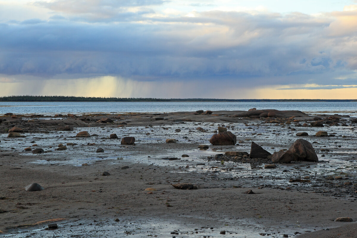 Берег Белого моря довольно пологий, поэтому при изменении уровня воды всего лишь на один метр, вода может уходить при отливе на сотни метров, обнажая морское дно.