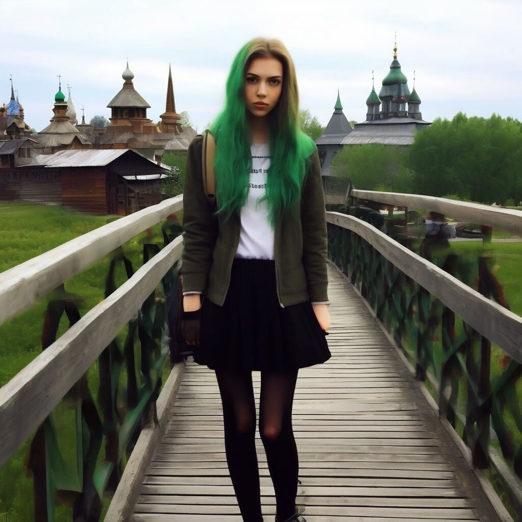 Алла быстро вышла из дома, набросив рюкзак на правое плечо. Ее нежно-зеленые прямые волосы падали на спину. Их кончики, чернильного цвета, подпрыгивали в такт шагам девушки. Она пробежала по заросшему спорышом двору, широко распахнула деревянную калитку, выкрашенную яркой голубой краской, и быстро зашагала по мощеной булыжником улице.