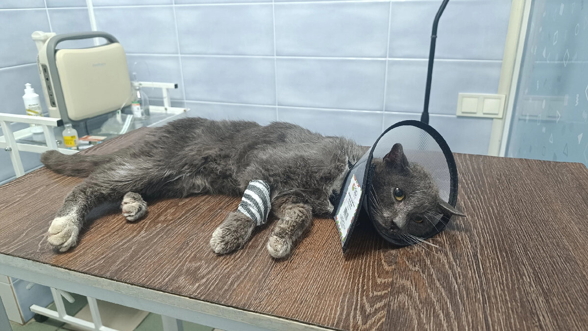 Борьба за жизнь котика продолжается в сельском мини-приюте Людмилы Ч.! Вчера снова были в клинике. На этот раз у Дымка (так решили назвать нашего ставочного котика) удалось взять кровь для анализов. По ответам волонтер ничего не поняла, но врач сказал все не плохо, у Дымка вирус. Не знает, лучше ему или хуже. Если сравнивать с тем котиком которого нашли и с тем что сейчас, то да, разница есть. Шкура стала гладкой и блестящей, когда оттягиваешь, после укола, становится на место. Котик стал реагировать на наших животных и хотим сказать, что характер у этого бедолаги ещё тот. При кормлении кусается, в клинике укусил медсестру. В общем, если смотреть с этой стороны, то да, Дымку лучше, но если оценивать его состояние в общем, то как волонтер видит и знает, то в данный момент сказать что-то однозначно нельзя. Дымку плохо и очень. Он по прежнему ни ест, ни пьет, а только лежит, с носа кровавогнойные выделения. Ему продлили капельницы и добавили еще другие препараты. На следующей неделе с