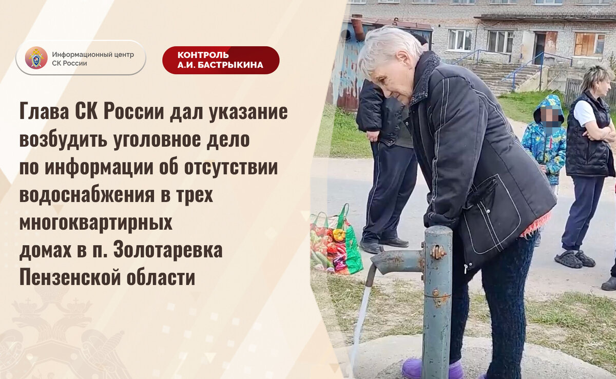 Глава СК России дал указание возбудить уголовное дело по информации об отсутствии водоснабжения в трех многоквартирных домах в п. Золотаревка Пензенской области