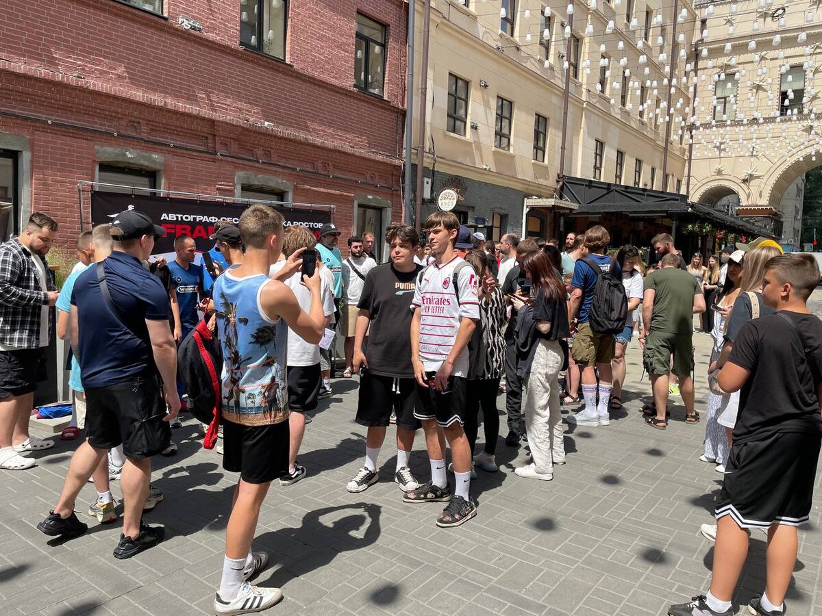 В день игры Баста и игроки СКА (они приехали накануне) провели автограф-сессию в центре Ростова. Улицу перекрывать на потребовалось, но очередь растянулась примерно на 10 метров.
