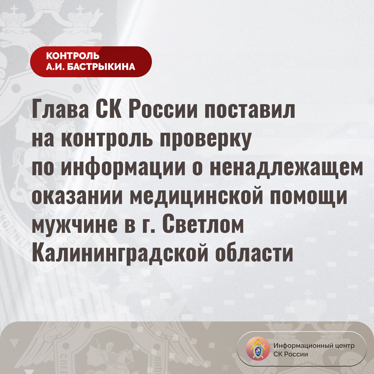 Глава СК России поставил на контроль проверку по информации о ненадлежащем оказании медицинской помощи мужчине в г. Светлом Калининградской области