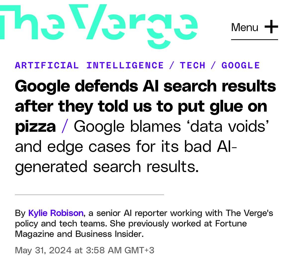 Речь идет про случаи, когда ИИ советовал людям добавить в пиццу клей или спрыгнуть с моста. Корпорация считает, что пользователи сами провоцируют их нейросеть и поэтому призывает юзеров прекратить писать мемные запросы в свой поисковик.