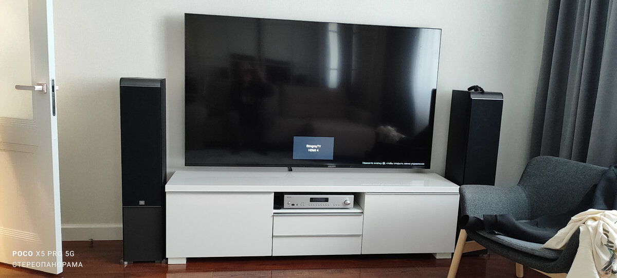 При этом даже если покупать такие (не всем же перепадают АС в качестве подарка), то они точно не разорят нового владельца: судя по объявлениям на Авито купить JBL ES-80 (фронтальную пару) можно примерно за 30 т. р. Вот и выходит что система Александра (так зовут владельца) в теории стоит 100 тысяч ₽ (ну +/-). Правда пока в качестве источника используется телевизор (о нём разговор особый) и (иногда) смартфон подключаемый по Bluetooth.