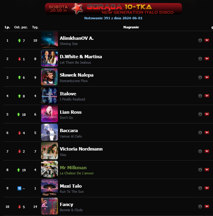 1 июня на польском радио RM-80 вышел очередной еженедельный хит-парад исполнителей Italo Disco New Generation.