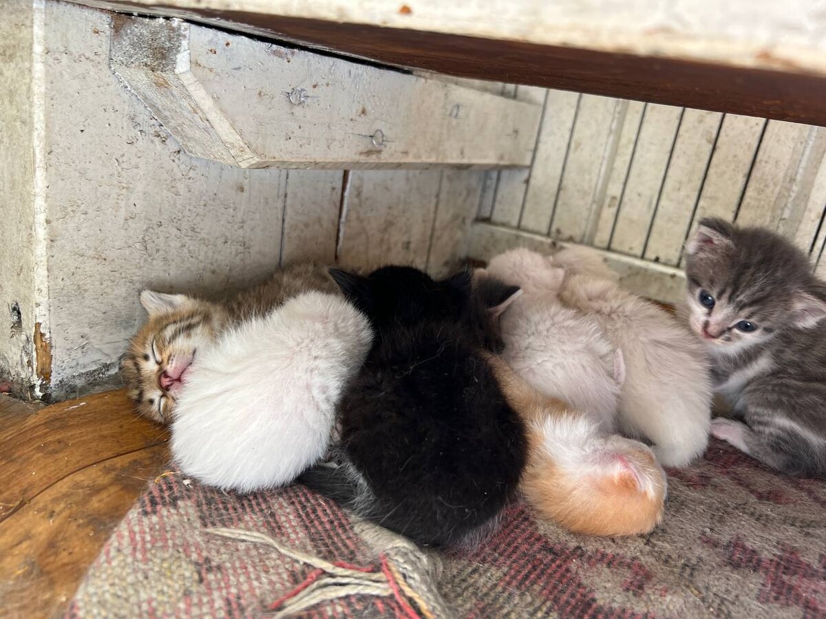 Во дворе у нас сейчас живет 19 кошек. Это хорошее, большое, совершенно достаточное число. Пять взрослых котодам и 14 котят, три выводка, — одни уже ходят, другие ползают, у третьих только глаза открылись. (Еще четырех котят, первую партию, я уже раздала). Всех котят кошки, не мудрствуя лукаво, притащили из гнезд и коробок нам на крыльцо и сложили там кучей. Кормят втроем в очередь, не разбираясь кто тут чей. По вечерам мы сидим на крыльце под лампой, пьем чай и ошалело взираем на это богатство. Все это с одной стороны ужасно мило, но очень громко и хлопотно. Кормление котов происходит по три раза в день. Мы варим гигантские казаны так называемого «хрючева» - это когда обрезки всех видов мяс, капуста, вермишель, морковка, мука, печенка превращаются путем долгого вываривания в умеренно однородную массу — хрючево мы замораживаем пакетами порционно, килограмма полтора на день. Плюс на десерт - куриные шеи и сердца скупаем палетами, в понедельник вон опять весь морозильный ларь этим