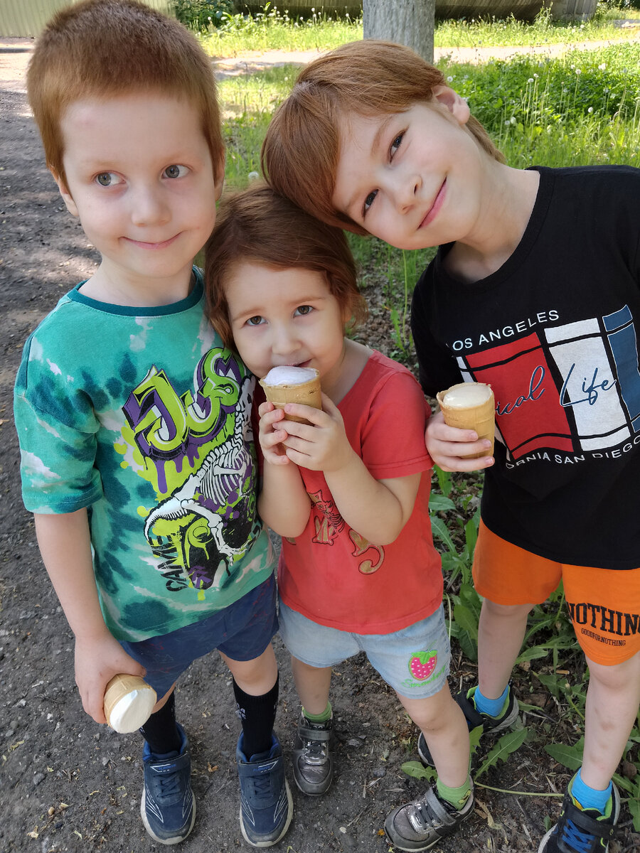Тусили в парке вчера целый день. День вчера выдался жаркий. +26 показывали термометры в тени, но на солнце явно было жарче. Спасались мороженым. Ровно до того времени, как дети увидели аниматоров в костюме серебристого Мишки и пятнистого жирафа. Конечно, отдали сразу мороженки мне и побежали обниматься и фотографироваться. К жирафу прям очередь выстроилась фотографироваться из малышей, не пробраться прям, удалось только ручкой приветственно помахать. Поиграли немного на детской площадке в "Чиполлино", пообнимались с белой пушистой кошкой. И стали активно меня уговаривать идти на большую детскую площадку. Неугомонные! По жаре идти на площадку не меньше 20 минут. Я решила идти через парк, вдоль озера. Удалось по дороге заснять кусочек местного "дикого" пляжа. На основном пляже народа столько, что яблоку негде упасть. Но очень жарко, так что видео в купальниках не будет 😁. И на площадке жарко, но разве детей это останавливает? Хорошо, хоть скамейку для меня заняли в тени. Ну и все.