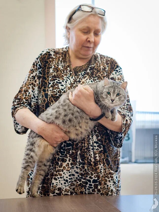 Показала свою любимку - уссурийскую кошку Раптор. Уссури - гибрид домашней кошки и амурского леопардового кота. Узнать о породе можно тут: Моя Раптор - добрейшая зверюшка, которая вообще не помнит о диких предках. Она добрейшая, нежнейшая и очень колоритная внешне: Дома - активная, подвижная, игривая. Толстопопая поскакушка с коротким и толстым хвостом. Нет, не беременная. Она стерильный кастрат и ласкуша. Нравится? Увы, больше в России уссури нет... На шоу, само-собой Раптор стала лучшей домашней кошкой выставки.
