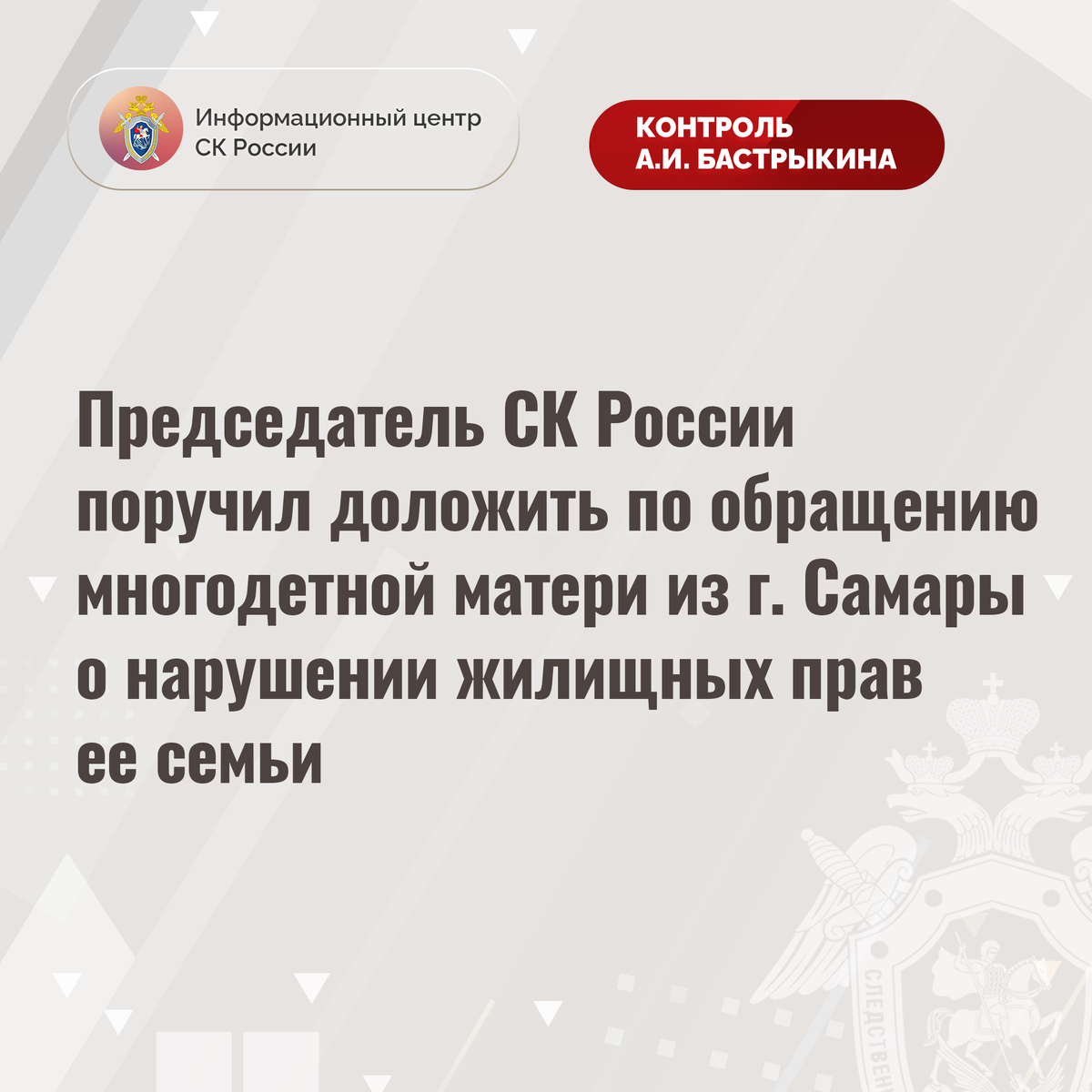 Председатель СК России поручил доложить по обращению многодетной матери из г. Самары о нарушении жилищных прав ее семьи