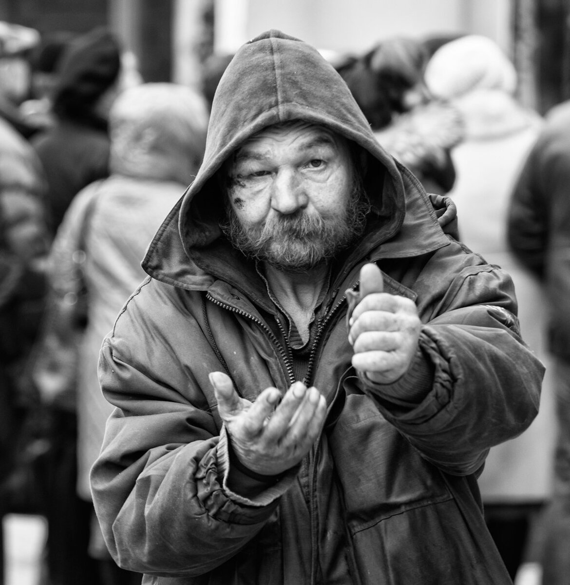 Среди толпы совсем один. Он путник одинокий. Его удел бродить среди: Безликих и жестоких. Что ищет путник в том пути? Где много ног ступало. Куда идти ? Зачем идти? Душа его стенала. Она тревожит и зовет Его в неведомые дали. На сердце больно, тяжело. На вид совсем усталый. Он вышел в путь длиною в жизнь И стёрты его ноги. Найти пытался силы жить Он стоя у дороги. Но сил уж нет! Среди толпы стоит не шелохнется, И боль в груди... И крик среди... Померкло в небе солнце .