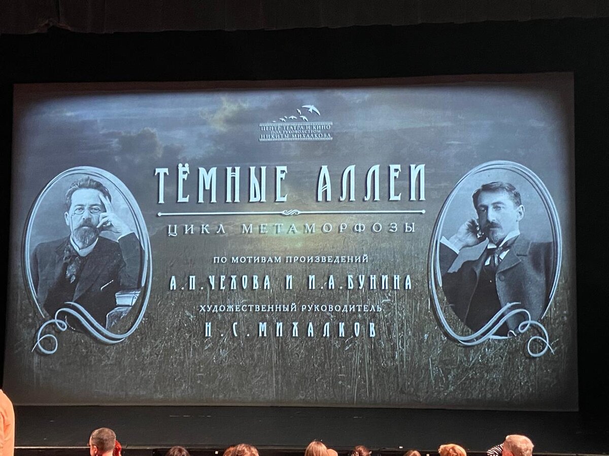 Цикл спектаклей под общим названием "Метаморфозы" мне порекомендовали друзья. Они были под большим впечатлением, очень рекомендовали посмотреть. И я пошла. Сначала посмотрела "Темные аллеи", а потом сходила на еще и на "Мадрид". Всего в цикле 4-е спектакля, еще есть спектакль "Визитные карточки" и "Жены артистов". Формат - сценический коллаж, хоть и не новый, такими же были и "Рассказы Шукшина" в Театре наций, но смотрится свежо. Кроме того формат по-своему уникален, поставлены рассказы не одного автора, а целых двух прекрасных писателей - Бунина и Чехова. Рассказы идут один за другим, выбранные по воле режиссера, но по нарастающей силе воздействия. Итого, каждый спектакль это - 7 миниатюр в разных жанрах. Скучать не придется. Главный режиссер - Никита Михалков, все актеры из его творческого центра. До 30 мая этот центр назывался Центр театра и кино, а вот уже 5 дней, как переименован в "Мастерская 12". Декораций совсем мало, их заменяет специальный занавес, на который проецируется