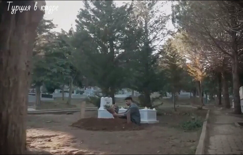 Яман пришел на могилу Эдже с цветами. Она похоронена рядом с Умутом.