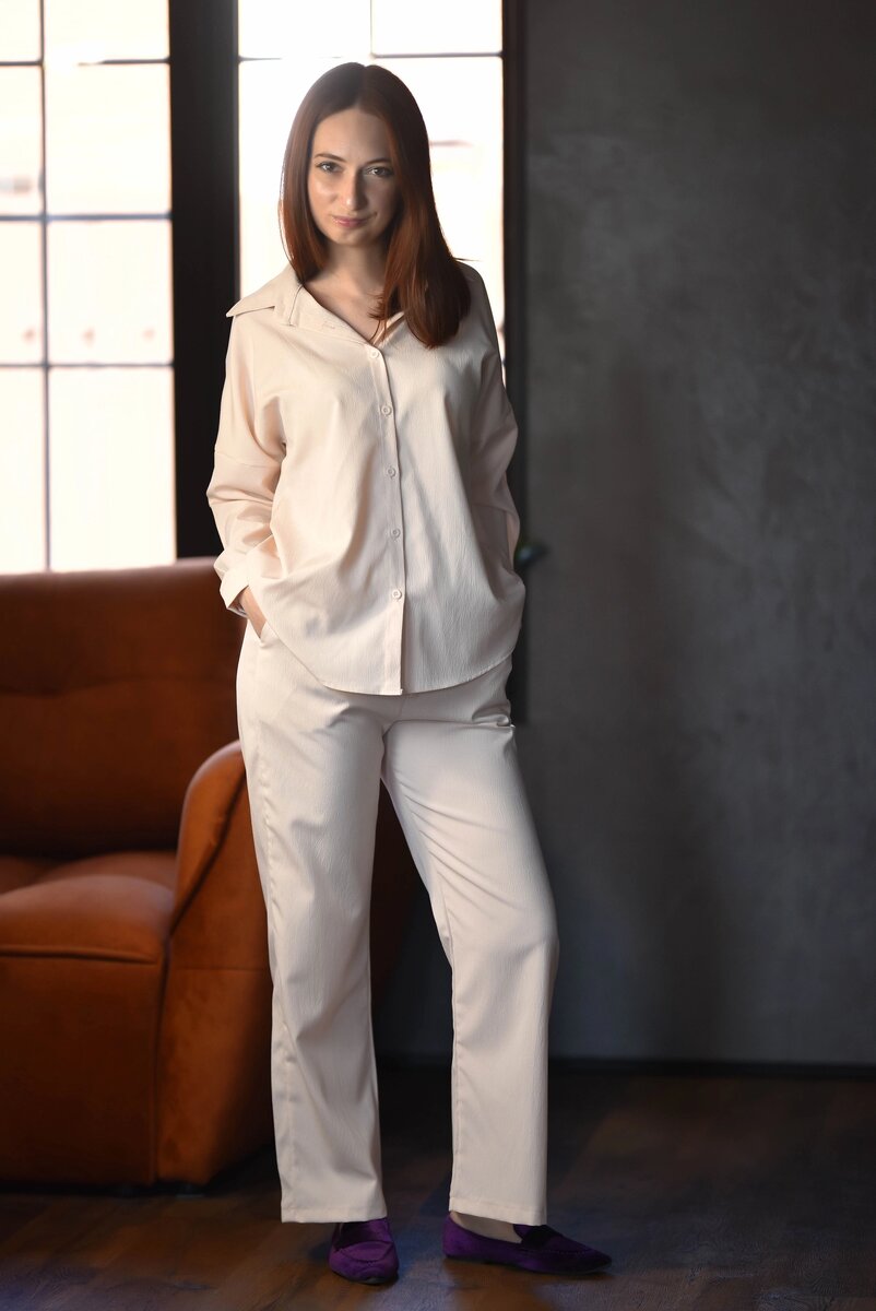Идеален для прогулок🚶♀️ стильный летний комплект из брюк и блейзера с отложным воротником свободного кроя. 🛒 ссылка на костюм на АлиЭкспресс 🛒 и такой же костюм нашёлся на Джум 🎬 видео примерки 6 расцветок на выбор, размерная сетка от S до XL. На мои параметры 78х60х90 см хорошо подошла Sка. При моём среднестатистическом росте в 172 см и рукава, и брюки хорошей длины. Каблуки надеть - это вряд ли, а вот кроссовки или босоножки на небольшой платформе можно, с обувью без каблука смотрится и вовсе отлично. Костюм сидит свободно, в нём удобно и комфортно даже в жару. В описании товара указан лён, но это не так - состав материала полиэстер и хлопок ткань лёгкая, нормально дышит и не просвечивает. Новые обзоры каждый день, выгодные акции и скидки, все с кликабельными ссылками в моем telegram канале