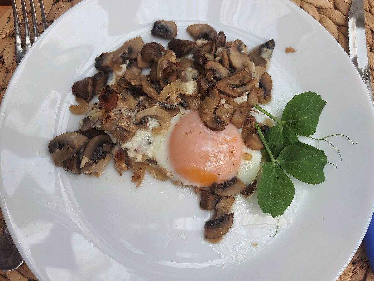 Разобрав вещи, отправилась на веранду готовить завтрак. Сегодня это яичница с луком и грибами.