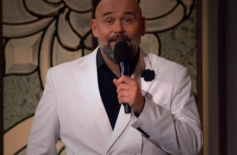 Сергей Трофимов - строит имидж остроумного сказителя анекдотов, при этом подыгрывает тем, кому положено и валит тех, кого определено