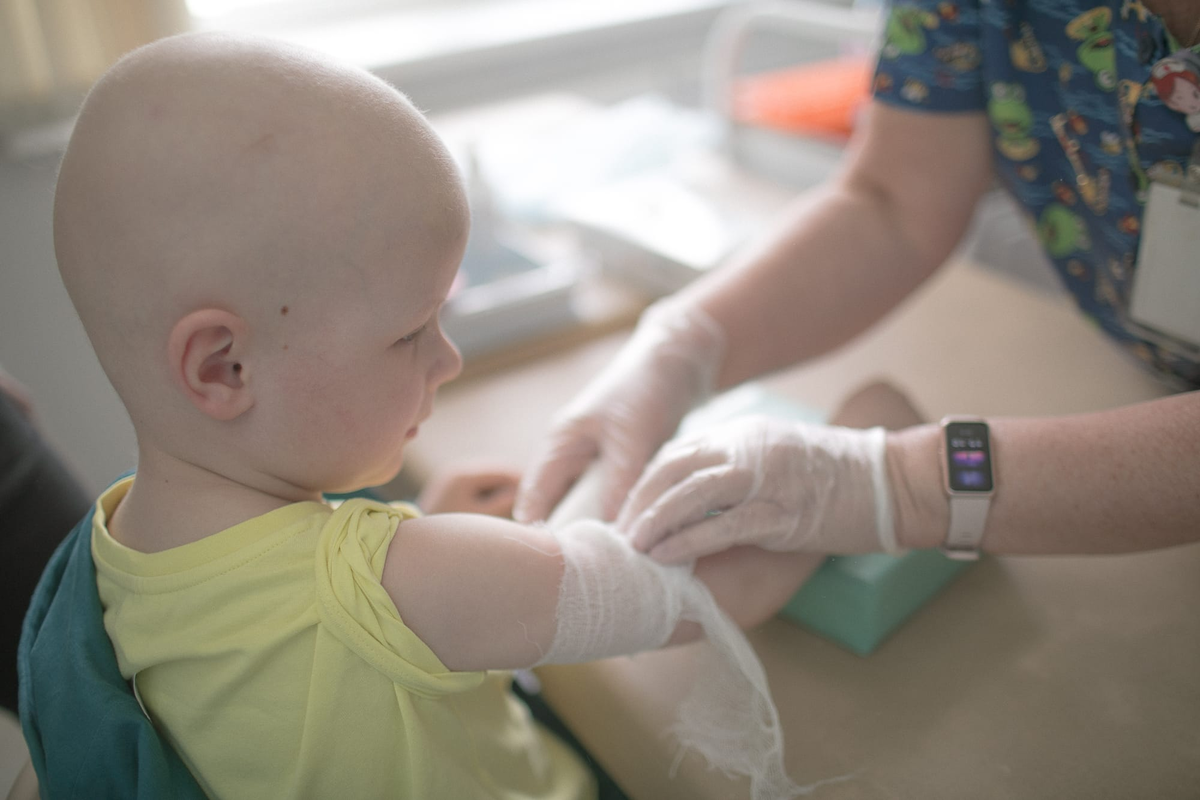 В одном из кабинетов Петербургского онкоцентра с табличкой «Афанасьева Елена Анатольевна, медицинская сестра» приглушённо звучит музыка: латиноамериканские ноты сменяются испанскими — необычное сочетание для процедурного кабинета детского онкоотделения. Улыбчивый Святослав стремительно забегает в кабинет, подходит к кушетке и протягивает руки.