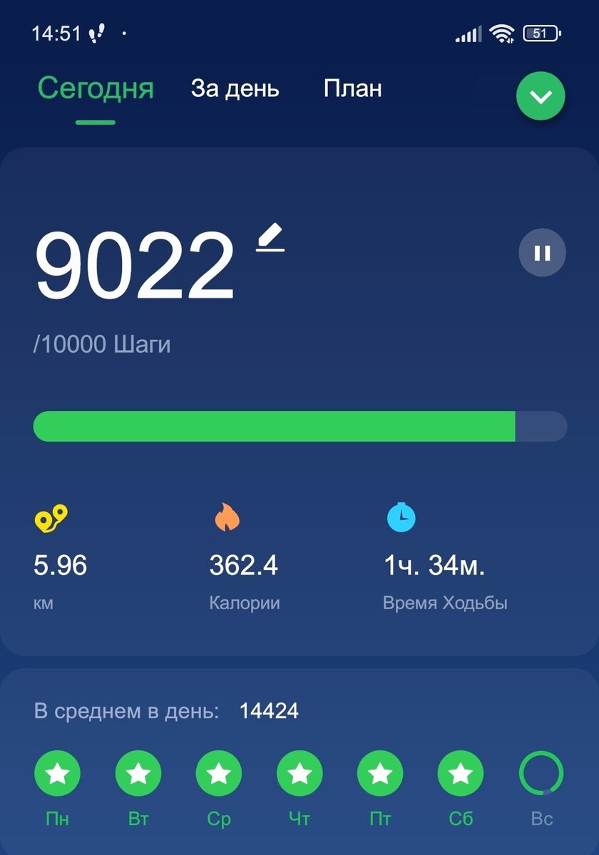 При дневном калораже 1800 калорий + 15 тысяч шагов я начинаю постепенный сброс веса.