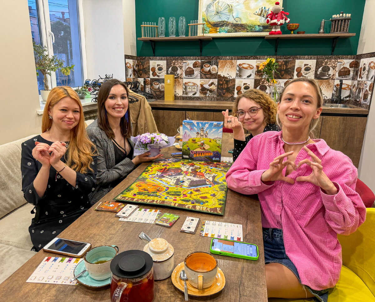 Что первым делом приходит мне на ум, когда я слышу слова «Средневековая академия»? Мне кажется, два слова — хайп и лимитированность. Игра очень давно была на русском языке, и я не стала покупать её на барахолке за бешеные деньги, чтобы просто опробовать — а потому очень обрадовалась, когда случился ретираж, ещё в теме котиков. Увидев на bgg сложность до 2 (1,81, кажется), я сразу поняла, что игра совсем семейная — благо, у меня есть друзья, которые совсем не матёрые настольщики, которые способны оценить прелесть простых семейных игр. ПРАВИЛА Я даже не уверена, что была готова к тому, что они настолько простые:) По сути игра состоит из закрытого драфта карт (выбора по 1 карте и передаче остальных соперникам) и продвижения по трекам после розыгрыша этих карт. Например, сыграли зелёную двойку — двигаетесь по зелёному треку на 2 клетки вперёд. В игре 6 раундов, в каждый из них участники сыграют по 4 карты с носа. Некоторые треки дают или отнимают очки в каждом раунде. Например, фиолетовый