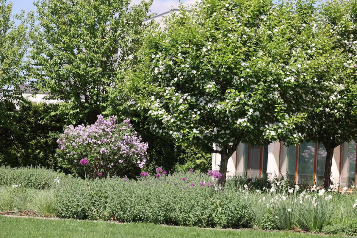 Эта зима и весна с возвратными заморозками показали в очередной раз, что выбирать растения в сады надо очень тщательно, не ориентируясь на пресловутое: «А у соседей третий год растет». В наших садах в этом году не было больших бед с растениями. Всё-таки за 20 лет работы уже исключили из ассортимента большинство проблемных растений. Только дубы пострадали на некоторых объектах. Но это не повод от них отказываться. Просто надо выбирать более тщательно место для них, а не только руководствоваться эстетикой и идеей, хотя это касается всех растений. Немного подмерзла в Завидово сирень китайская, но отрастет, не страшно. Еще раз убедилась, что лучший можжевельник – это «сосна горная» (я знаю, что они из разных семейств))). Как могу отговариваю заказчиков от посадки можжевельников. В крайнем случае сажаем можжевельник скальный (тоже немного пострадал в этом году) или можжевельник средний "Mint Julep" (Минт Джулеп). И тоже не сажать их лишь бы куда. Лучше выбирать для можжевельники Минт Джулеп