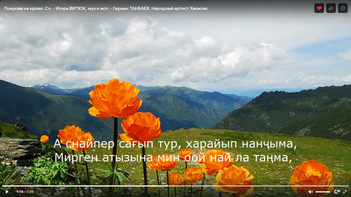 Но Игорю Мамышеву это удалось! Более того, Герман Танбаев, изготовивший видеоклип песни на хакасском языке, снабдил его субтитрами исходного русского стихотворения. Поэтому, когда я смотрел и слушал хакасский вариант песни, то я смог напевать исходный русский текст.