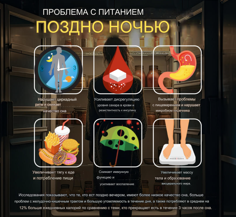 Время приема пищи также может иметь большое значение. Избегайте слишком позднего приема пищи. В идеале между ужином и сном должно пройти от 3 до 5 часов. Особенно важно избегать ночных перекусов, особенно сахаром, тяжелой пищей и алкоголем. Слишком поздний ночной прием пищи может привести к дисбалансу сахара в крови, гипогликемии, кислотному рефлюксу, другим проблемам с пищеварением, плохому сну и низкой энергии в течение дня. Вместо ночных перекусов можно пить травяные чаи, такие как ромашка, валериана, страстоцвет или лаванда, которые помогут вам заснуть и поддержат ваше здоровье. Также полезно оставлять достаточно времени между приемами пищи. Многим людям помогает прерывистое голодание или питание с ограничением времени. Подробнее об этом я расскажу в одном из следующих разделов. Но 12-16 часов, включая ночной сон, в течение каждых 24 часов, отведенных на голодание (не прием пищи), могут быть полезны для вашего здоровья. Во время оставшегося периода питания равномерно распределяйте