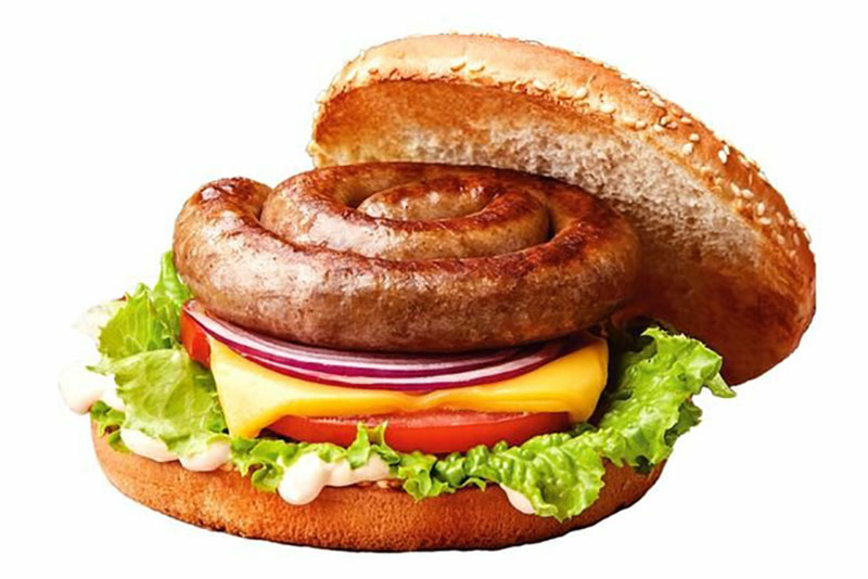 Колбаска Медистр — прекрасная альтернатива котлете для гамбургера, круглая сочная колбаска идеально подходит для булочки 125 мм.