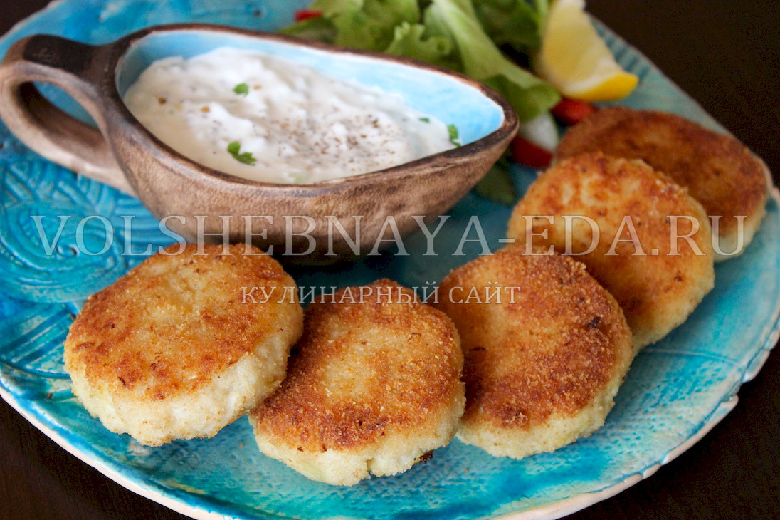 Готовить рыбные котлеты мы сегодня будем на сковороде, а подавать со сметанно-огуречным соусом. Для приготовления подойдет любая белая рыба, к примеру, хек или минтай, но сегодня это минтай. Чтобы котлеты получились сочными, в фарш мы добавим хлебный мякиш, размягченный в молоке, а также взбитый белок. За счет такого ухищрения котлеты будут не только нежными, но и пышными. Но обо всем по порядку. основа котлет: для панировки: для соуса: Минтай я разморозила и филировала, то есть отделила мякоть от костей и кожи. Пробила филе в блендере до состояния фарша (можно прокрутить через мясорубку). Репчатый лук очистила и порубила мелким кубиком. Обжарила его до мягкости на сковороде в разогретом растительном масле. Лук не должен быть сырым или, наоборот, слишком пережаренным. Соединила его с рыбным фаршем. Мякоть белого батона порубила ножом — как можно мельче. Замочила пару минут в молоке (можно использовать 15-20% сливки). Добавила к будущему фаршу. Отделила белок (желток не понадобится). В